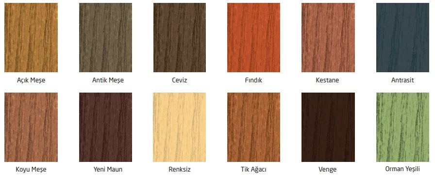 Ahşap yüzeylerde suya ve UV ışınlarına karşı dayanıklılık sağlayan, ipeksi parlak son kat vernik.